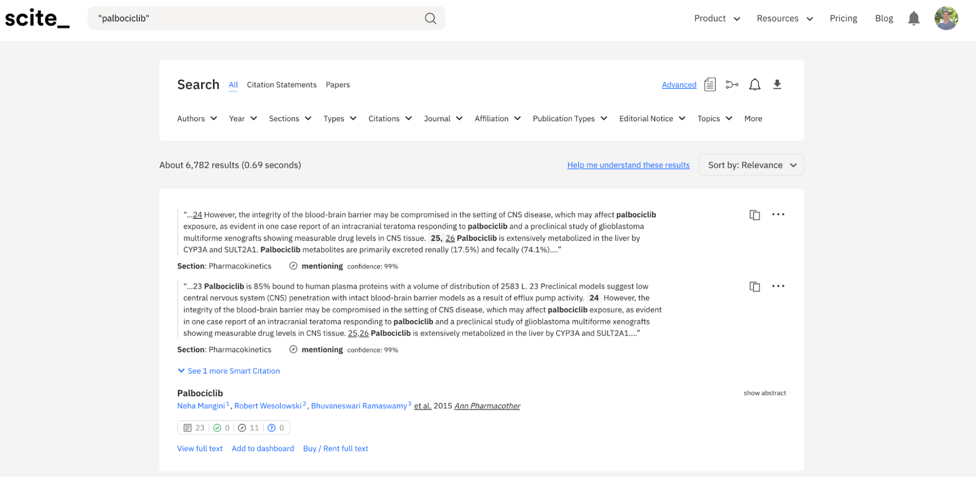 The current waySay you are a researcher interested in learning more about the CDK4 inhibitor "palbociclib." First, you might try searching palbociclib in something like Google Scholar. If you do that, you find over twenty thousand papers mentioning it. Google Scholar does show you the key phrase used in the full-text article, but it only returns fragments of sentences showing how it was matched, without enough context to help you understand how it was discussed.