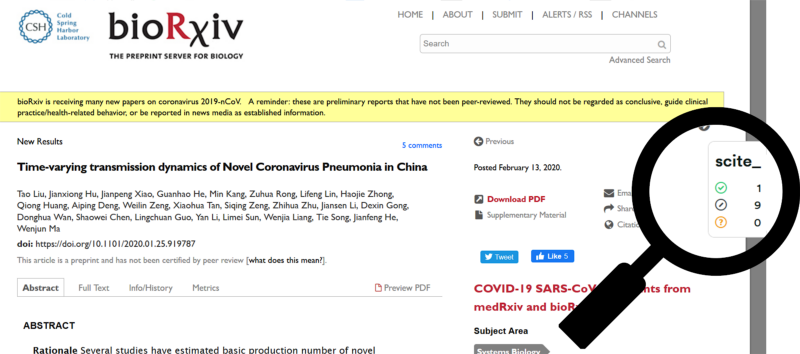 To show the utility of scite when looking at COVID-19 papers, let’s take a single example report — “Early Transmission Dynamics in Wuhan, China, of Novel Coronavirus–Infected Pneumonia” — published in the New England Journal of Medicine.