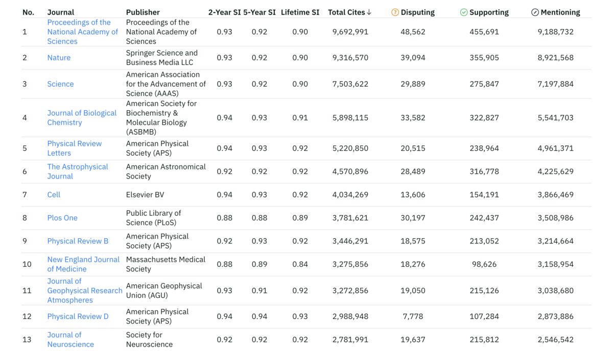 This is a powerful way to look at scientific articles and the literature in general, but what does this information look like at the journal level? Which journal has received the most supporting citations? How does this journal look within a field of research and what is the ratio of supporting to disputing citations? Today, we are happy to announce the launch of scite journal dashboards to help you better answer such questions.