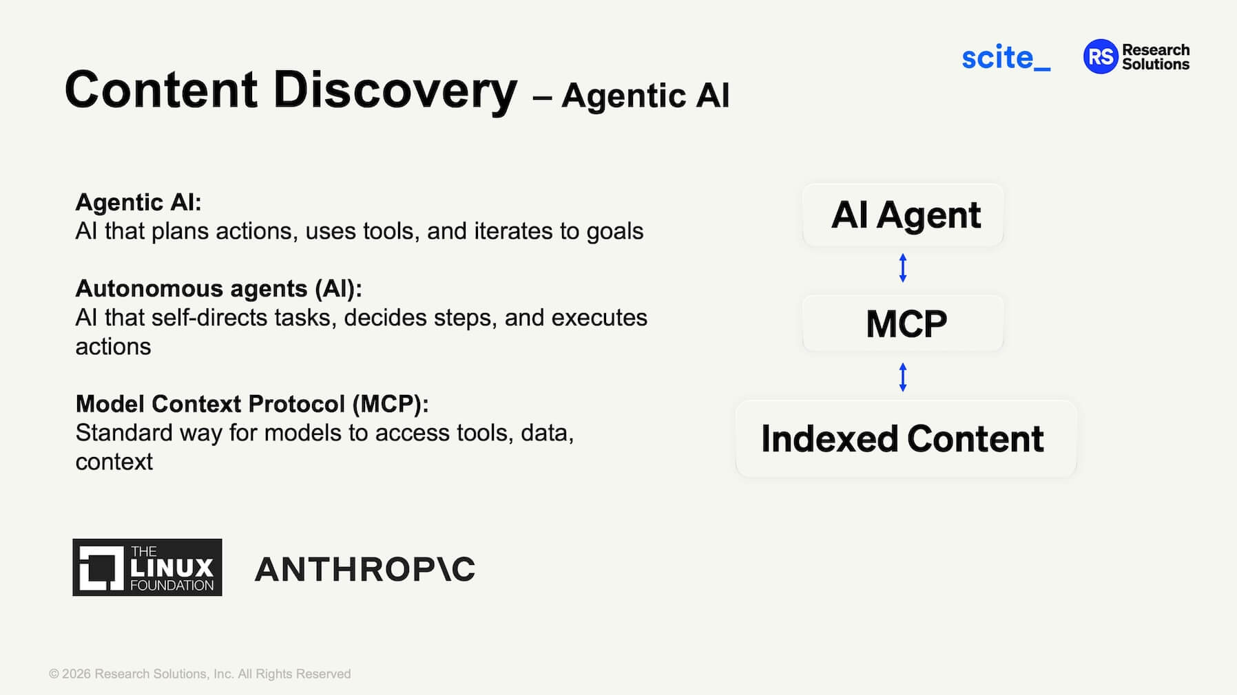 The shift happening now is from simple question-and-answer LLMs to more autonomous agentic AI systems that can plan workflows and execute tasks. Imagine asking an AI to research a topic. Instead of just searching the web, it could query scholarly databases, access full-text articles (with proper permissions), cross-reference findings, and synthesize results while showing you the citation context.